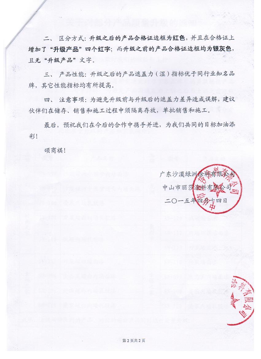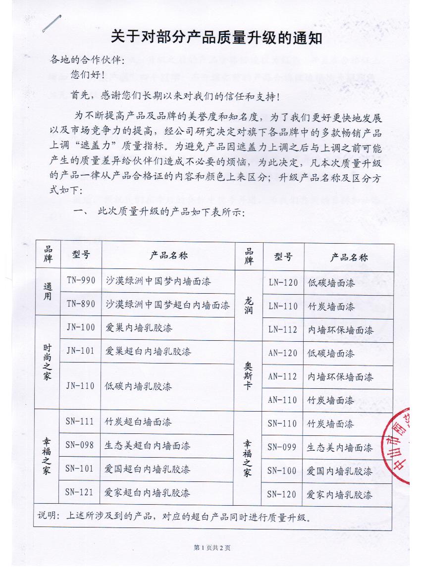 關(guān)于對部分產(chǎn)品質(zhì)量升級的通知